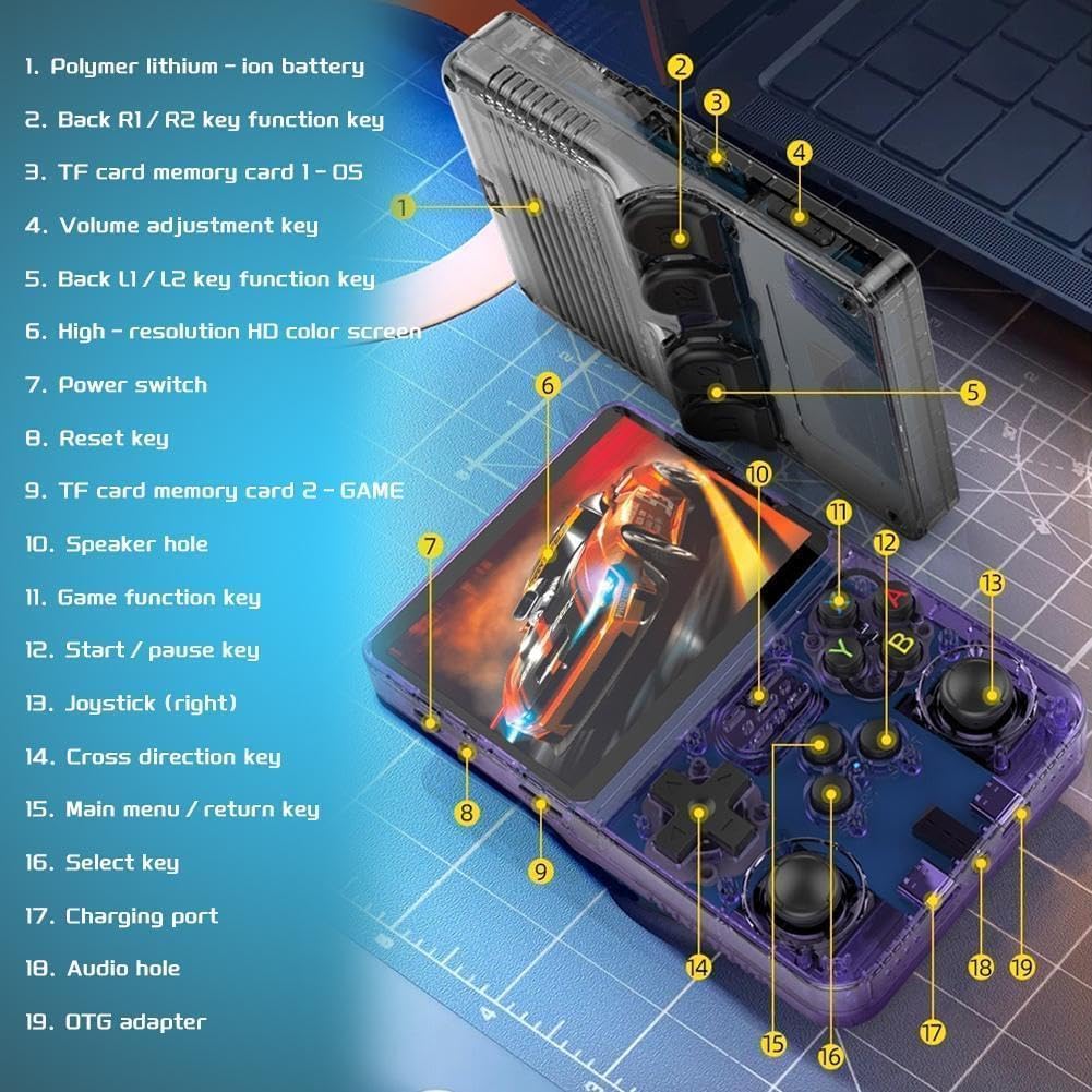 Powered by the RK3326 Quad-Core 64-bit Cortex-A35 processor and 1GB DDR3L RAM, the R36S ensures smooth emulation across a wide range of classic gaming platforms. Dual analog joysticks, responsive buttons, and an ergonomic layout provide precise control and comfortable gameplay.
