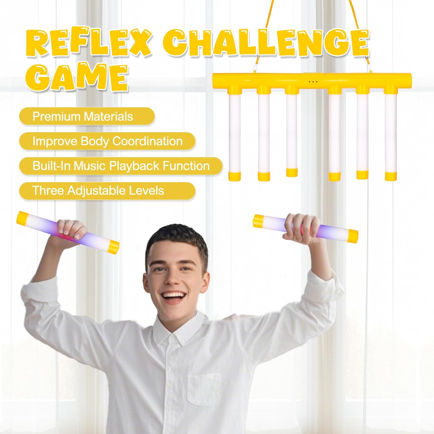 The Reaction Challenge Interactive Game is an exciting new way to test your speed, coordination, and reflexes. Designed with light-up sticks that drop randomly, it challenges players to catch them as quickly as possible, making it the perfect game for both kids and adults.