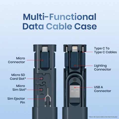 Its hidden storage case neatly holds all connectors, including adapters for Type-C to Lightning (iPhone), Type-C to Micro, and Type-C to USB, along with Nano SIM and SIM 2FF card slots and a SIM ejector pin.