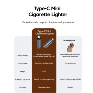 The Type-C Mini Cigarette Lighter is a compact and innovative solution for smokers who want a lighter that’s safe, stylish, and environmentally friendly. Powered directly from your smartphone or any device with a USB-C port, this lighter eliminates the need for fuel or batteries.