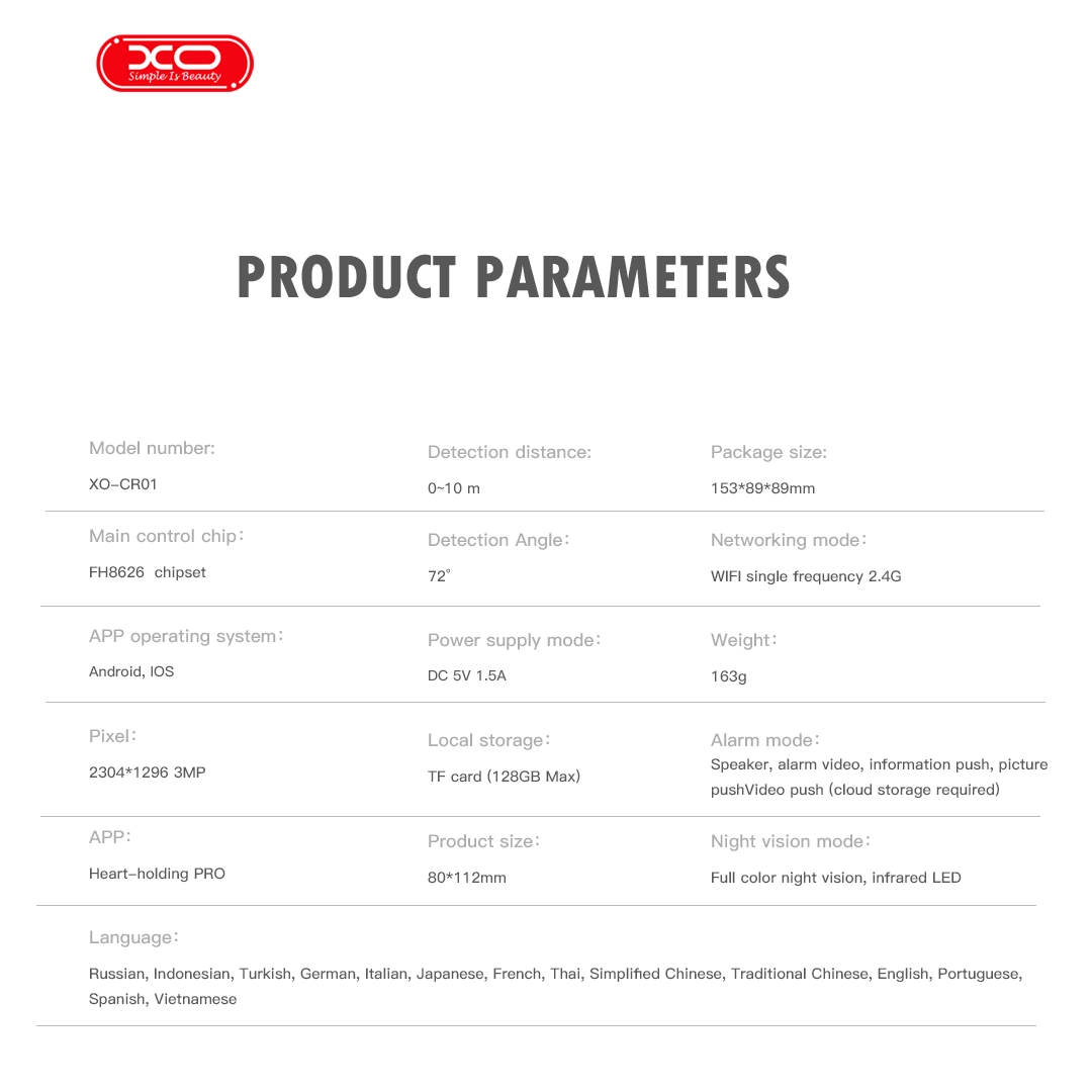 Compact, modern, and easy to install, the XO CR01 is a practical, secure, and affordable smart home camera.