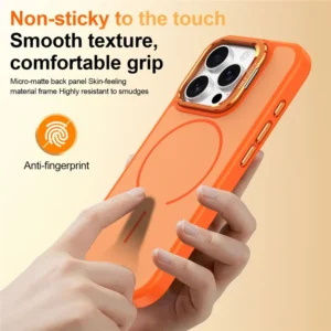 Featuring a smooth matte finish with a built-in magnetic ring and integrated aluminum kickstand, this case ensures seamless compatibility with magnetic accessories while giving you the freedom to watch, browse, or video call hands-free. The adjustable stand allows flexible viewing angles, making it ideal for both work and entertainment.